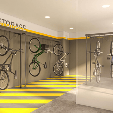 ▪ BICICLETÁRIO COBERTO NO PAVIMENTO TÉRREO: PREVISÃO PARA APROXIMADAMENTE 55 BICICLETAS;
