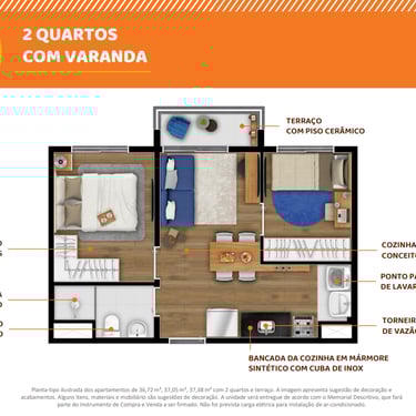 ▪ Unidades com terraço com piso cerâmico;