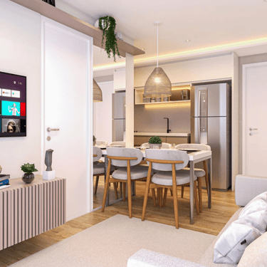 ▪ Cozinha e living com conceito aberto;