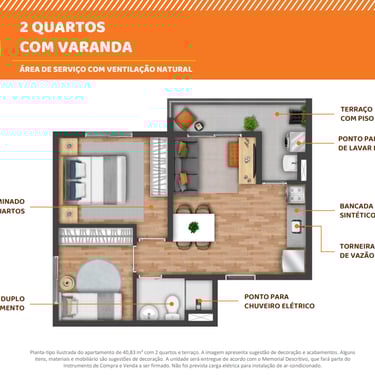 ▪ Ponto para chuveiro elétrico (o chuveiro não será entregue pela construtora);